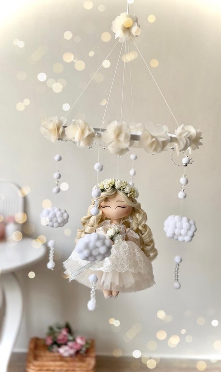 آویز تخت با طرح فرشته دست ساز با آویز های ابر